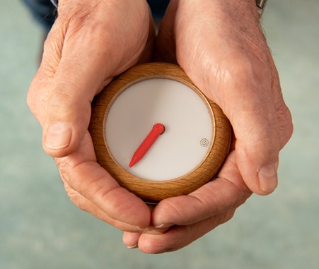 Op basis van interesse bij mensen met dementie en Alzheimer Nederland kwam er een kans om in 2022 aan de slag te gaan met een vervolg op het Welthuis Kompas. Op basis van de eerdere inzichten uit het ontwerpproces is een standalone prototype ontwikkeld (figuur 3). Dat betekend dat dit prototype gebruikt kon worden alsof het een werkend product was, dit noemen we ook wel een “research product” (Odom e.a. 2016).
