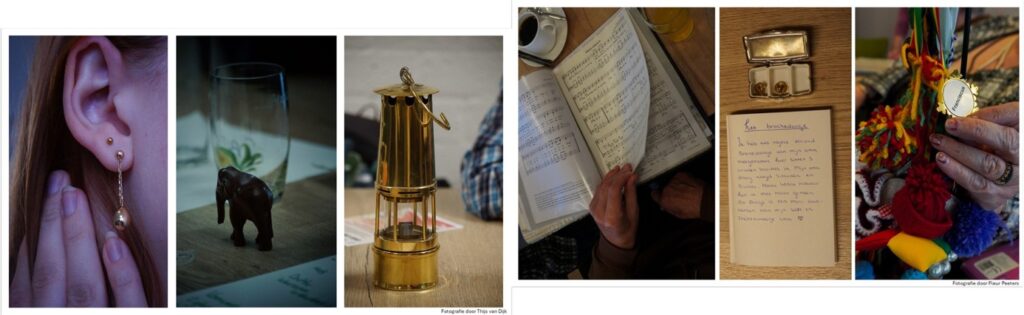 Tijdens de eerste ontmoeting namen beide partijen een object mee met persoonlijke betekenis, zoals een erfstuk, gebruiksvoorwerp of kunstwerk (zie figuur 1 en 2). Juist deze tastbare ankers hielpen om verhalen los te maken en zorgden ervoor dat het gesprek niet bleef hangen in algemeenheden (Sínez, 2021).