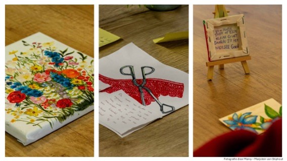Sommige ouderen maakten zelf ook een creatie, geïnspireerd door het gesprek. Een oudere vrouw vertelde hoe haar inmiddels overleden partner altijd veldboeketten plukte onderweg naar huis. Een student maakte er een schilderij van. Toen de oudere het werk zag, zei ze: “Dit spreekt voor zich. Het is alsof ik mijn man weer even terugzie.”
