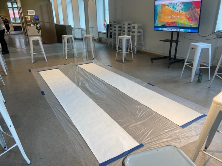 Via een uitwisseling, gefinancierd door Alzheimer Nederland, ontmoetten wij de initiatiefnemers van het ADlab van de UiT Universiteit in Tromsø, Noorwegen. Ann Therese Lotherington, Dragana Lukić en Lilli Mittner, ingebed bij het Centre for Women’s and Gender Research, experimenteren sinds 2017 met gesitueerde kunstinterventies in verzorgingshuizen (Mittner & Gürgens Gjærum, 2022; Lukić & Mittner, 2023) als oprichters in dit ADlab. Hier leren ze samen over thema’s zoals genderspecifieke veroudering, leven met dementie en co-creativiteit bij mensen met dementie via deze methodiek. Wat wij vooral waarderen aan deze methodologie, is het multi-sensorische en affectieve luisteren. Hierbij maken de betrokkenen niet alleen verbaal contact, maar ook via het lichaam of creatieve materialen. Dit is een niet-talige vorm van contact en onderzoek die nog niet gebruikelijk is in verpleeghuizen in Nederland.